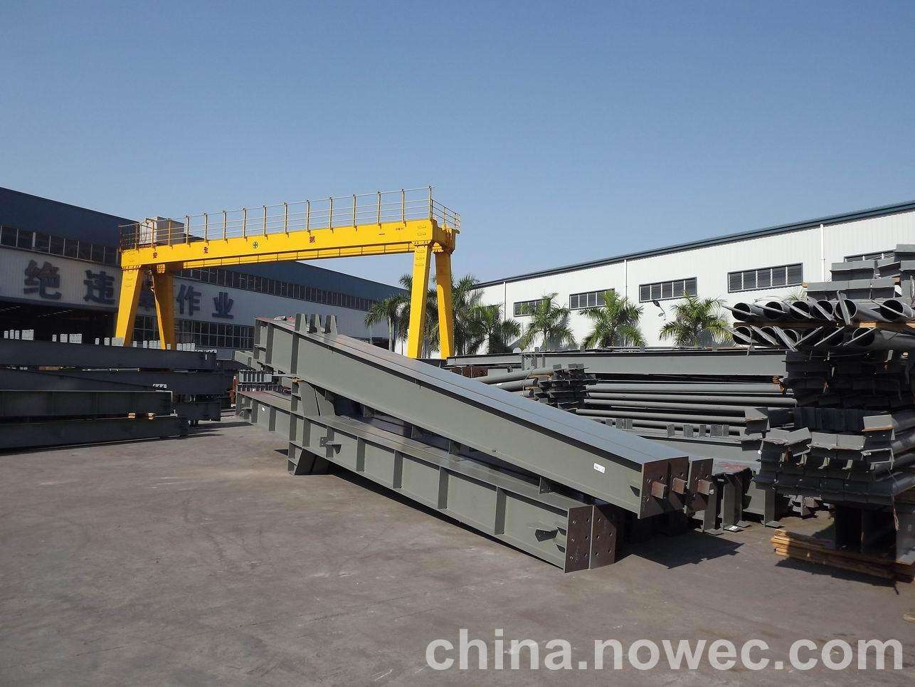 条状单元一般沿长跨方向分割,其宽度约为1~3个网格,其长度为l2或l2/2(l2为短跨跨距)。块状单元一般沿博尔塔拉蒙古自治州网架平面纵横向分割成矩形或正方形单元。每个单元的重量以现有起重机能胜任为准。条(块)与条(块)之间可以直接拼装,也可空一网格在高空拼装。由于条(块)状单元是在地面拼装,因而高空作业量较高空散装法大为减少,拼装支架也减少很多,又能充分利用现有起重设备,故较经济。这种安装方法适用于分割后网架的钢度和受力状况改变较小的各类中小型网架,如两向正交正放四角锥、正放抽空四角锥等网架。